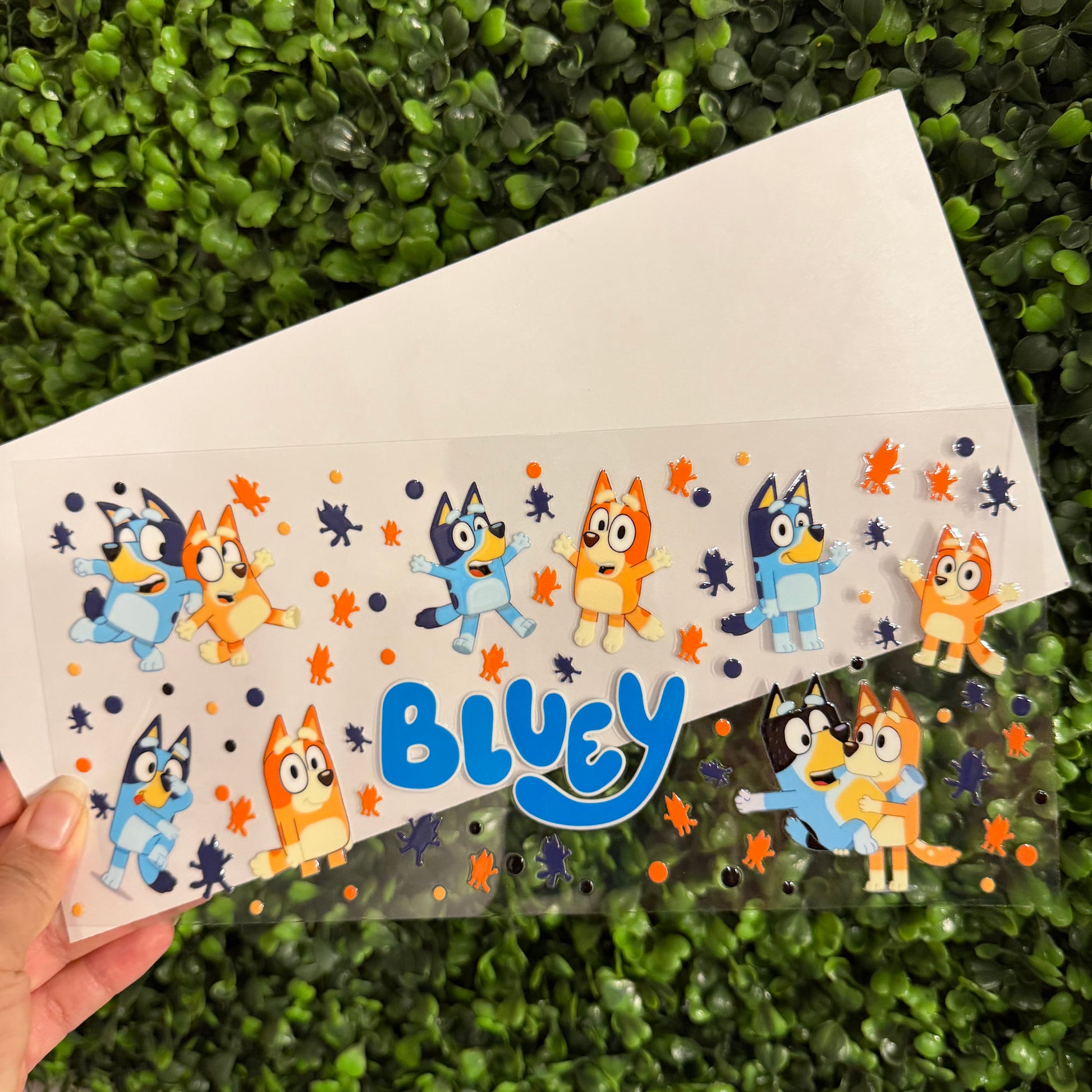 To apply the UVDTF wrap, use a squeegee to smooth out both the front and back, then trim off any excess that overlaps on the cup. Carefully remove the transfer sheet and place the decal onto your cup or surface, using the squeegee to firmly press it in place. Once you're done, simply peel off the clear sheet! Take your time to avoid any issues.